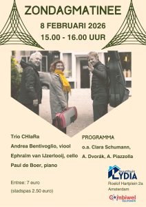 Kom op zondag 8 februari a.s. om 15 uur genieten van onze zondagmatinee met het trio CHIaRa.Dit trio bestaat uit Andrea Betivoglio (viool), Ephraïm van IJzerlooij (cello) en Paul de…